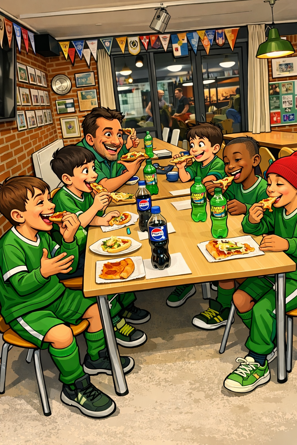 Efter træningen er der pasta med kødsovs i klubhuset, så der er god tid til hygge og fællesskab 🍝